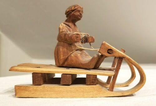 Title (ebay affiliate link): Miniature Country Man, on Sled. Wood Folk Art. Early 1900s German Hand-Crafted