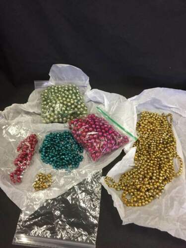 Title (ebay affiliate link): Antique Glass Garland Red, Green & Gold plus some blue dimpled plastic