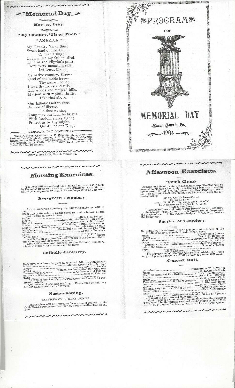 Memorial Day Program 1904 Mauch Chunk (now Jim Thrope).