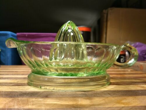 Title (ebay affiliate link): ANTIQUE LARGE GREEN DEPRESSION GLASS JUICER SPOUT + LOOP HANDLE