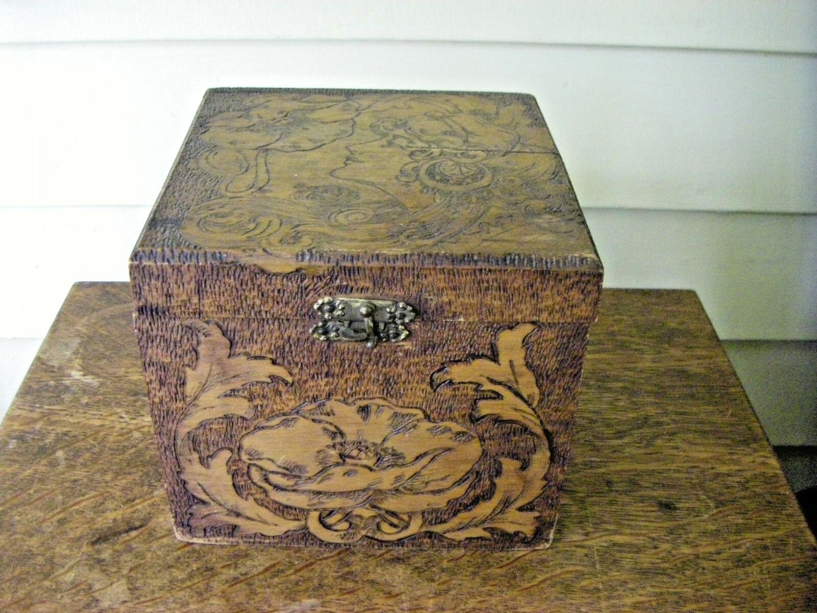 Very Detailed Flemish Burnt Wood Box Flemish 685 on bottom