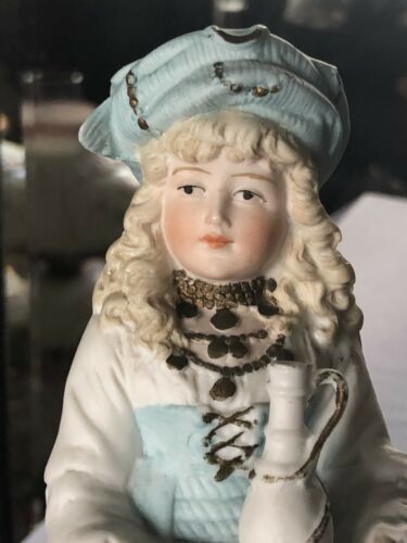 Antique German Bisque Figurine Girl Carrying Wine NR