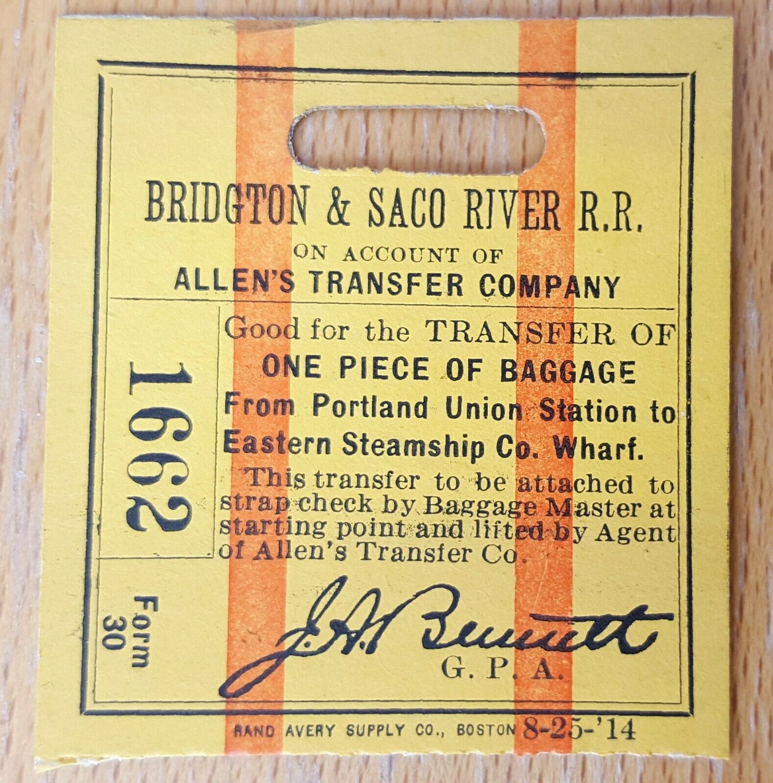1914 Bridgton & Saco River Railroad, Vintage Ticket