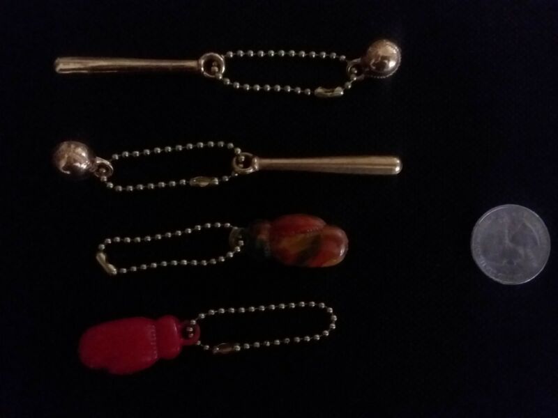Vintage Two Goldtone Bat and Ball and Two Plastic Boxing Glove Key Chains