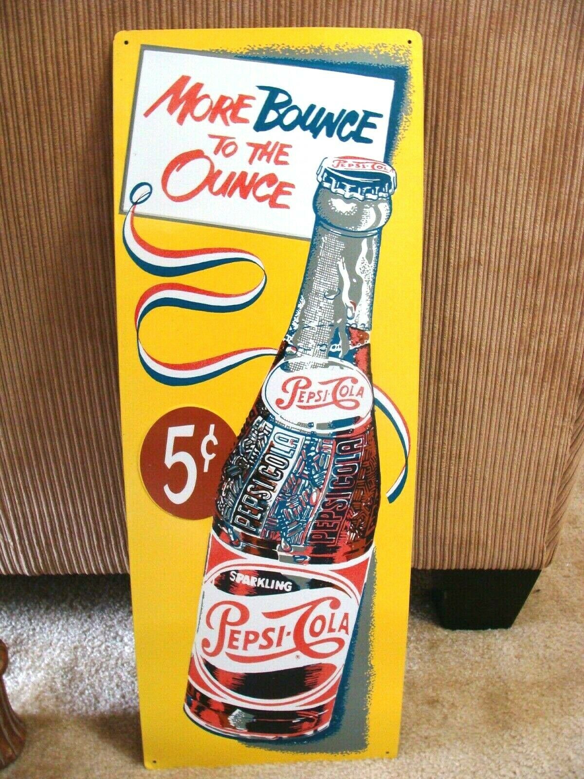 Title (ebay affiliate link): Vintage 1950''s Pepsi Cola Soda Pop Bottle 25" Embossed Metal Store Sign!