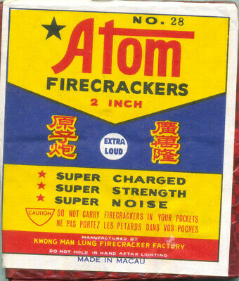 ATOM BRAND KWONG MAN LUNG FIRECRACKER LABEL NO. 28 MACAU