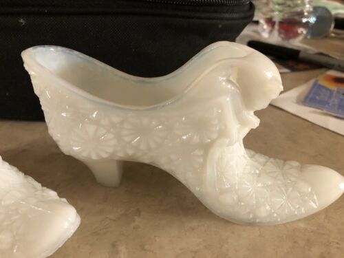 VINTAGE FENTON MILK GLASS SHOE WITH CAT