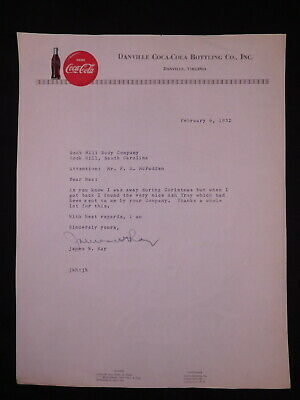 Title (ebay affiliate link): 1952 DANVILLE VIRGINIA COCA-COLA BOTTLING CO. letter on letterhead