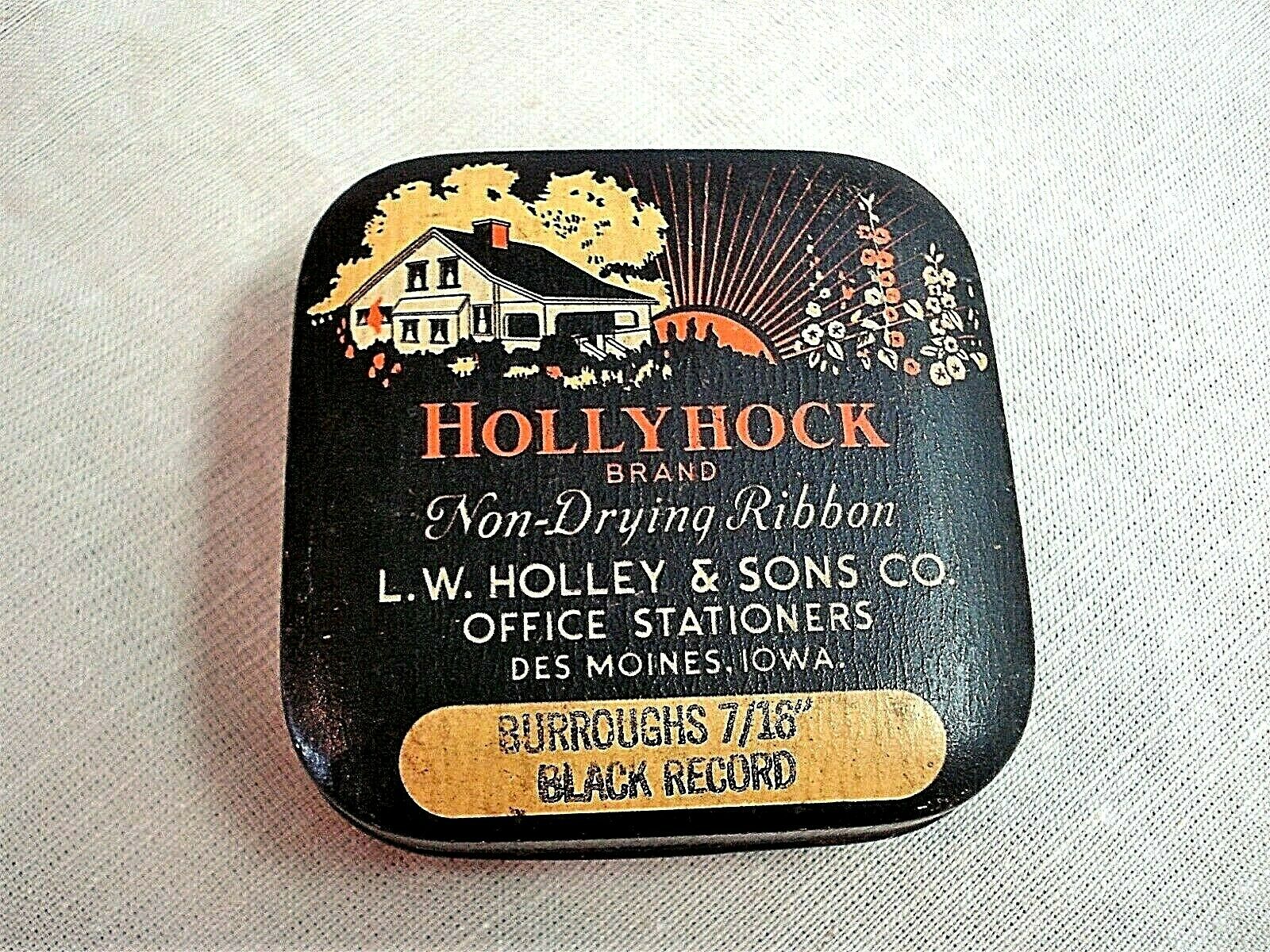 Vtg HOLLYHOCK Typewriter Ribbon Tin--FABULOUS CONDITION-HOLLEY & SONS CO.-Iowa