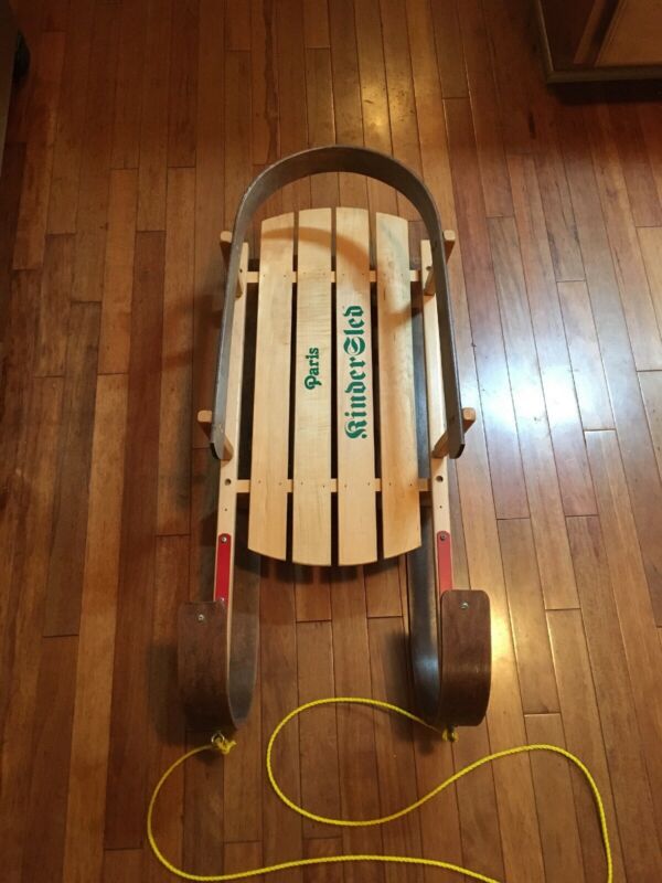 Title (ebay affiliate link): Vtg Wooden 36" Paris Kinder Child Toddler Baby Pull Wood Sled Sleigh Christmas