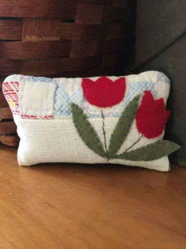 Primitive Stitchery Red Tulips Ornie Vintage Old Quilt Spring Decoration