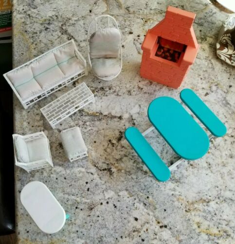 Title (ebay affiliate link): LOT 8PC Vintage Matel Barbie Size Outdoor Furniture Fireplace Pit 1989