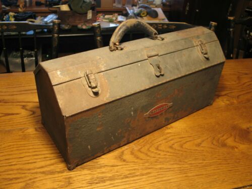 Vintage Craftsman Metal Tool Box with Tray Tombstone Hip Roof Sears Great Patina