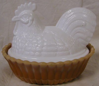 "Westmoreland" Chocolate & Milk Glass Covered Rooster