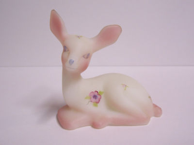 FENTON MILKGLASS FAWN/DEER 'BERRIES & BOSSOMS'
