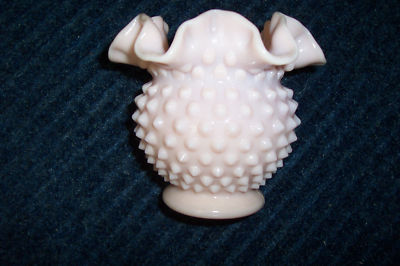 Vintage Fenton Pink Milk Glass Hobnail Vase