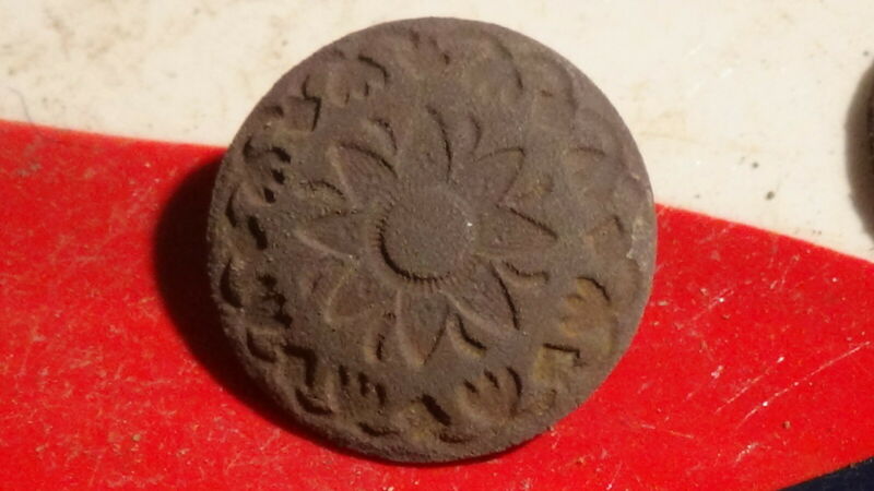 Title (ebay affiliate link): CIVIL WAR CONFEDERATE CAMP DUG SOUPBOWL FLOWER BUTTON COAT SIZE