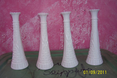 4 Pc White Milk Glass Vases**Excellent Cond**