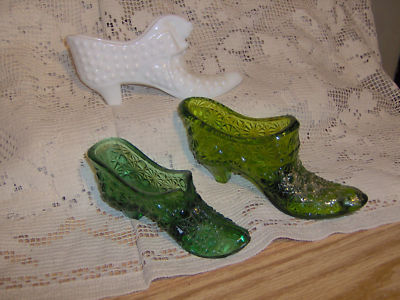 LOT/3 GLASS SHOES - ONE IS FENTON MILK GLASS