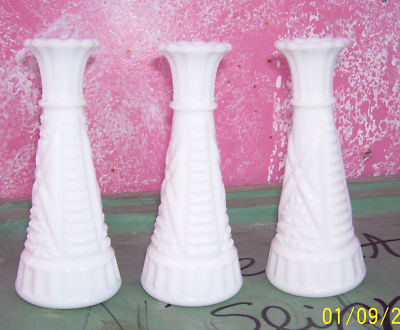 3 Pc White Milk Glass Vases Lot**Excellent Cond**