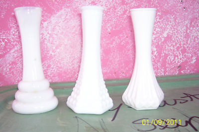 3 Pc White Milk Glass Mix Vases Lot**Excellent Cond**
