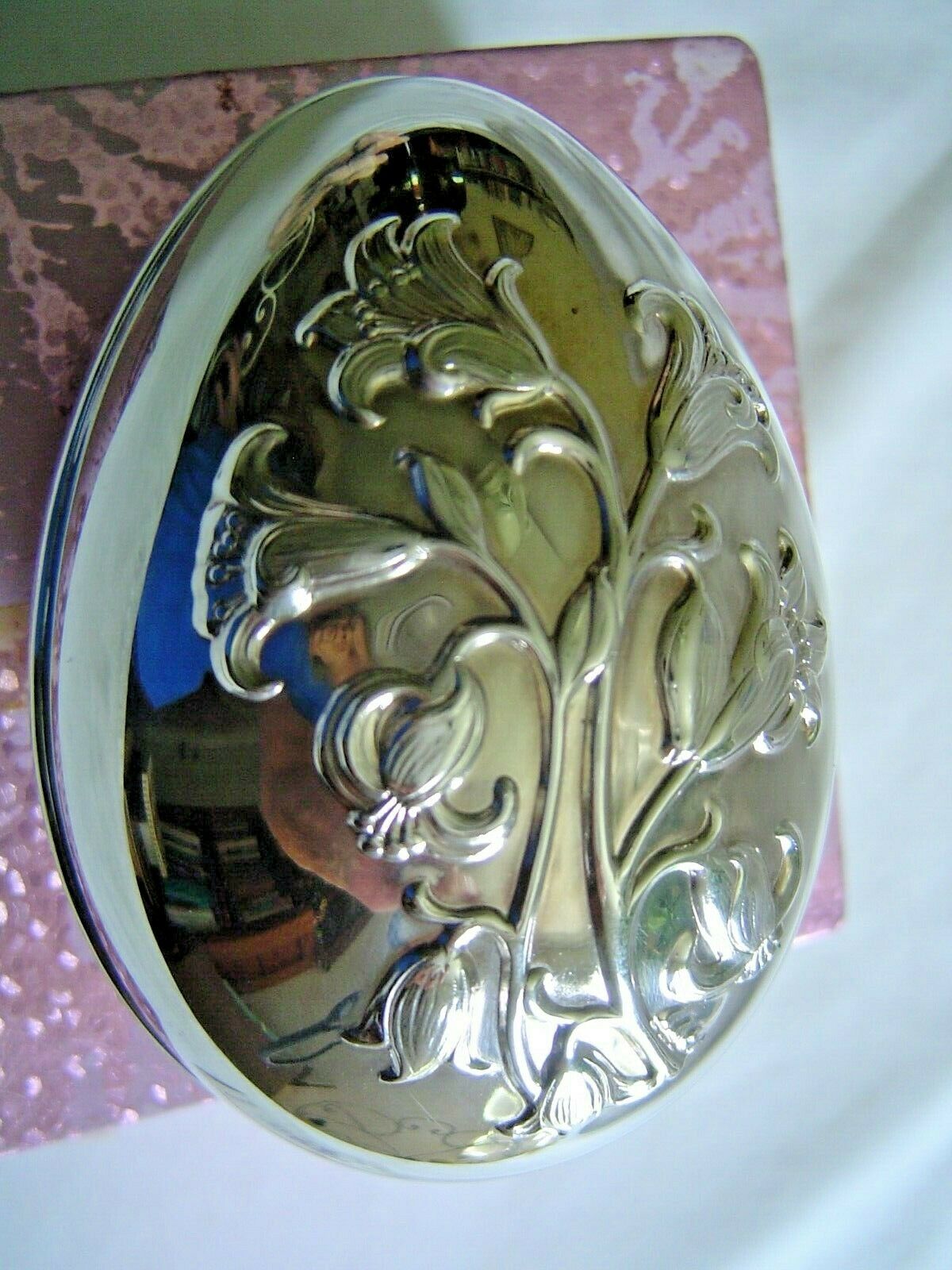 Title (ebay affiliate link): 1977 WALLACE SILVERPLATE EASTER EGG TRINKET BOX EMBOSSED LILIES IN BOX W/INFO