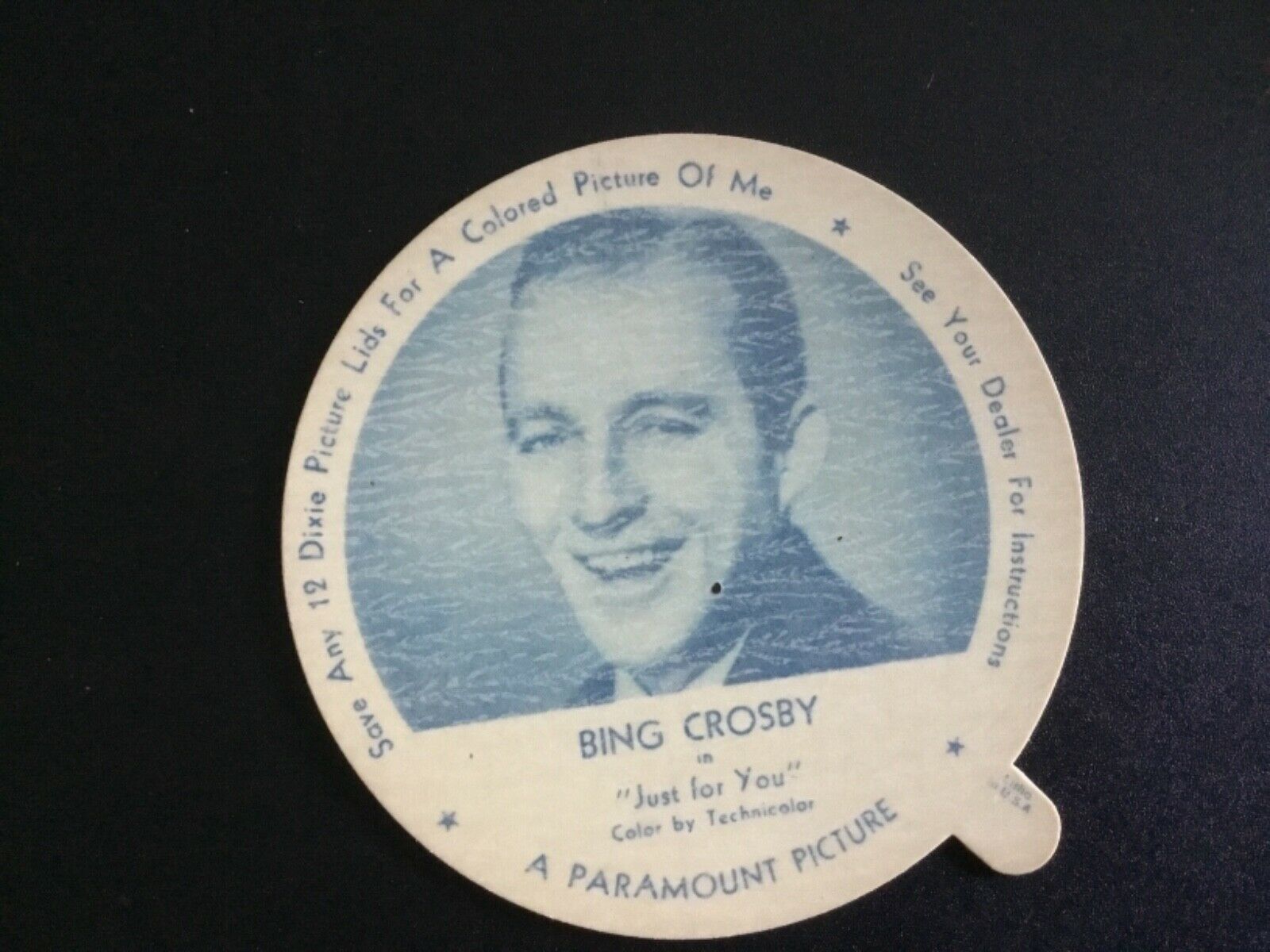 1952 DIXIE CUP BING CROSBY NELSONS ICE CREAM CARD