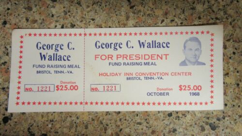 Title (ebay affiliate link): George C. Wallace for President Fund Raising Meal Ticket Bristol TN VA 1968