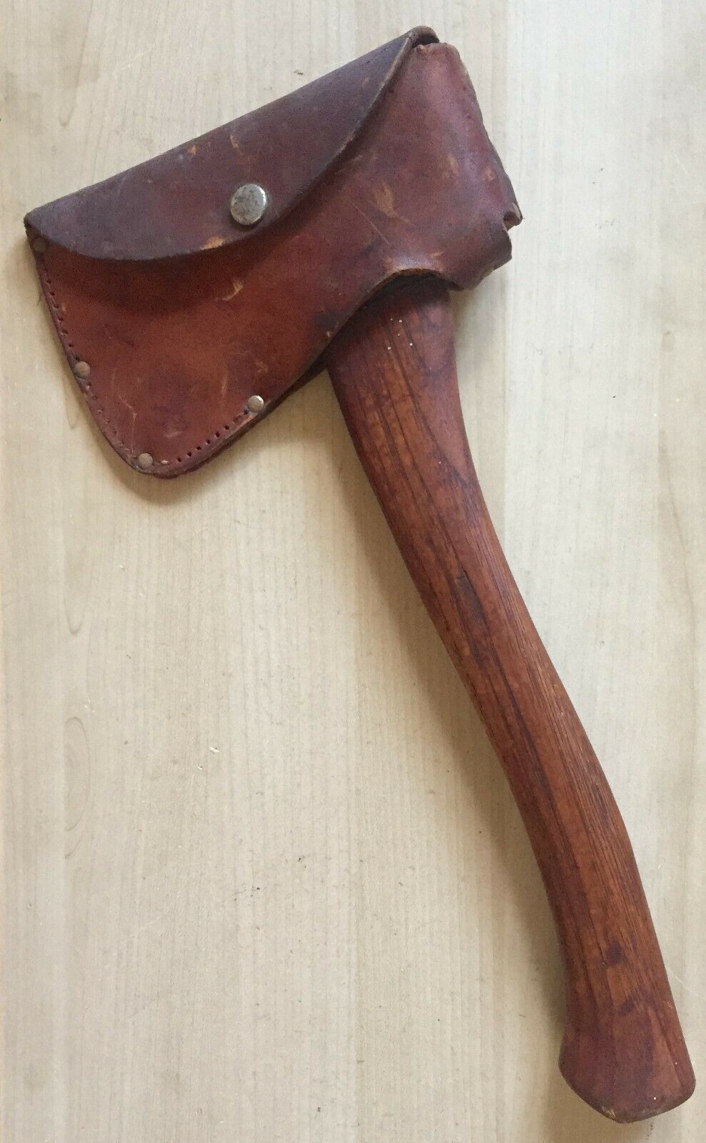 Title (ebay affiliate link): Vintage PLUMB Camp Axe Hatchet w/ Leather Sheath