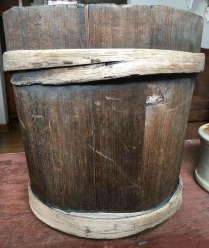 Title (ebay affiliate link): Antique Primitive Wood Sugar Bucket Keeler Maple Sugar Sap W/Wood Bands AAFA
