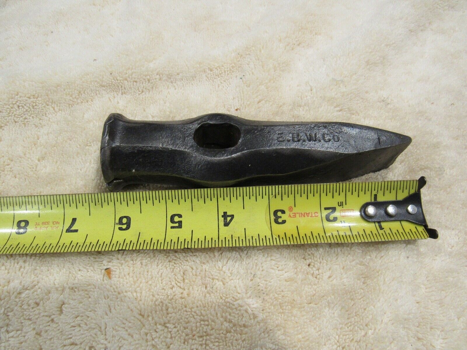 Vintage Blacksmith''s 1 Lb 13 Oz Straight Peen Hammer Head Marked E.B.W. CO