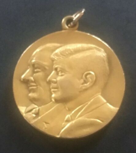 Title (ebay affiliate link): 10 K Gold Inaugural Ball Medal Kennedy Johnson c1961 2 Headed Medal. AS