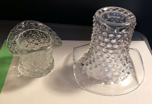 2 VINTAGE GLASS TOP HATS ~ DAISY & BUTTON & HOBNAIL