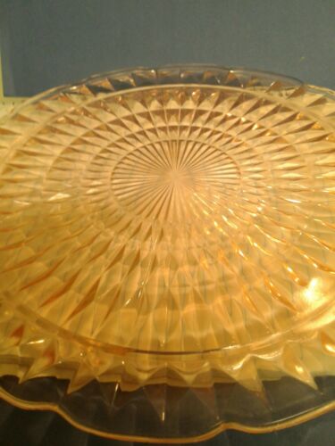 Title (ebay affiliate link): Pink Depression Glass Starburst 3 Footed Cake Plate 10" Across