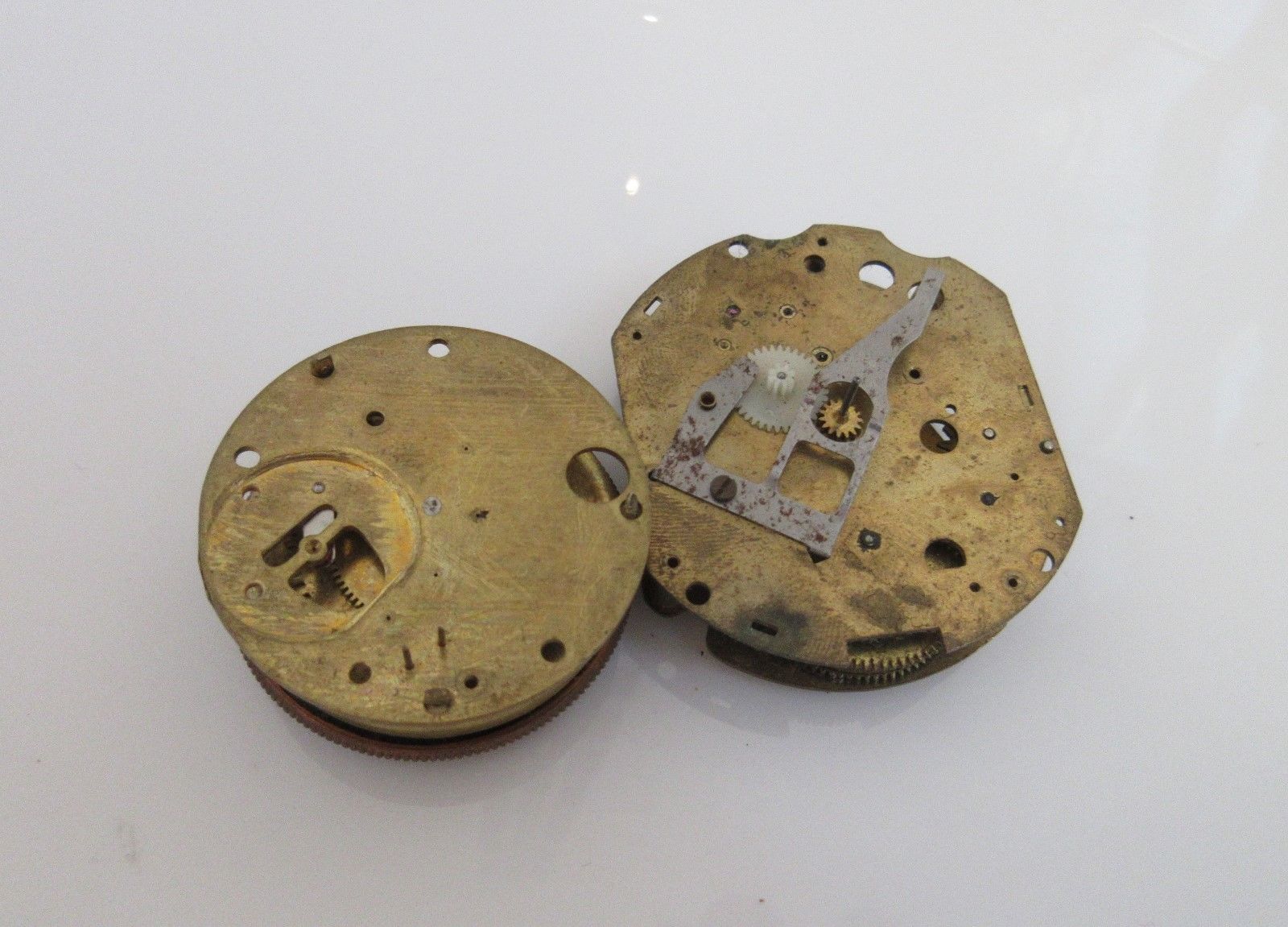 2 x Vintage brass Clock movements for parts or steampunk only cogs wheels