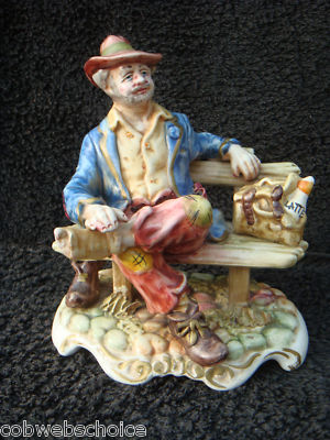 CAPODIMONTE FIGURE MAN ON BENCH WITH PICNIC BASKET