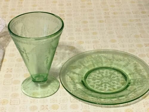 Title (ebay affiliate link): Belmont Rose Cameo Footed Tumbler & Salad Plate Authentic Green Depression Glass