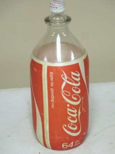Title (ebay affiliate link): VTG 64OZ FOAM LABLE COCA COLA GLASS BOTTLE EMPTY HAS SCREW ON LID