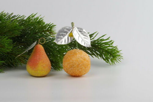 2 x Vintage Spun Cotton Christmas Ornaments,tangerine,pear