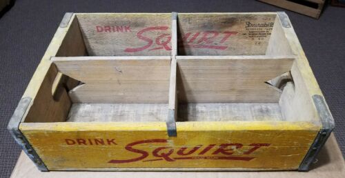 Title (ebay affiliate link): VTG SQUIRT WOODEN 6 PACK DIVIDED SODA BOTTLE CARRIER CRATE