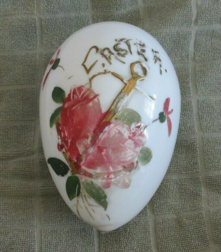 Vintage Hand Blown Hand Painted Milk Glass Easter Egg "EASTER"