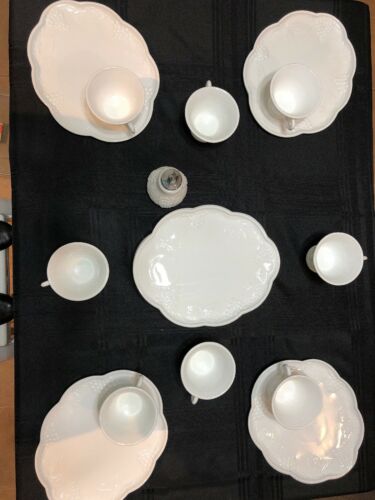 Milk Glass Vintage Indiana : "Harvest" Pattern Snack plate and cup - Set of 8