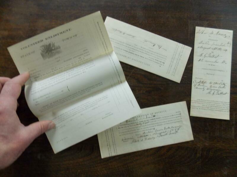 Title (ebay affiliate link): 4 WISCONSIN CIVIL WAR VOLUNTEER ENLISTMENT Documents Black Eyes Dark Complexion