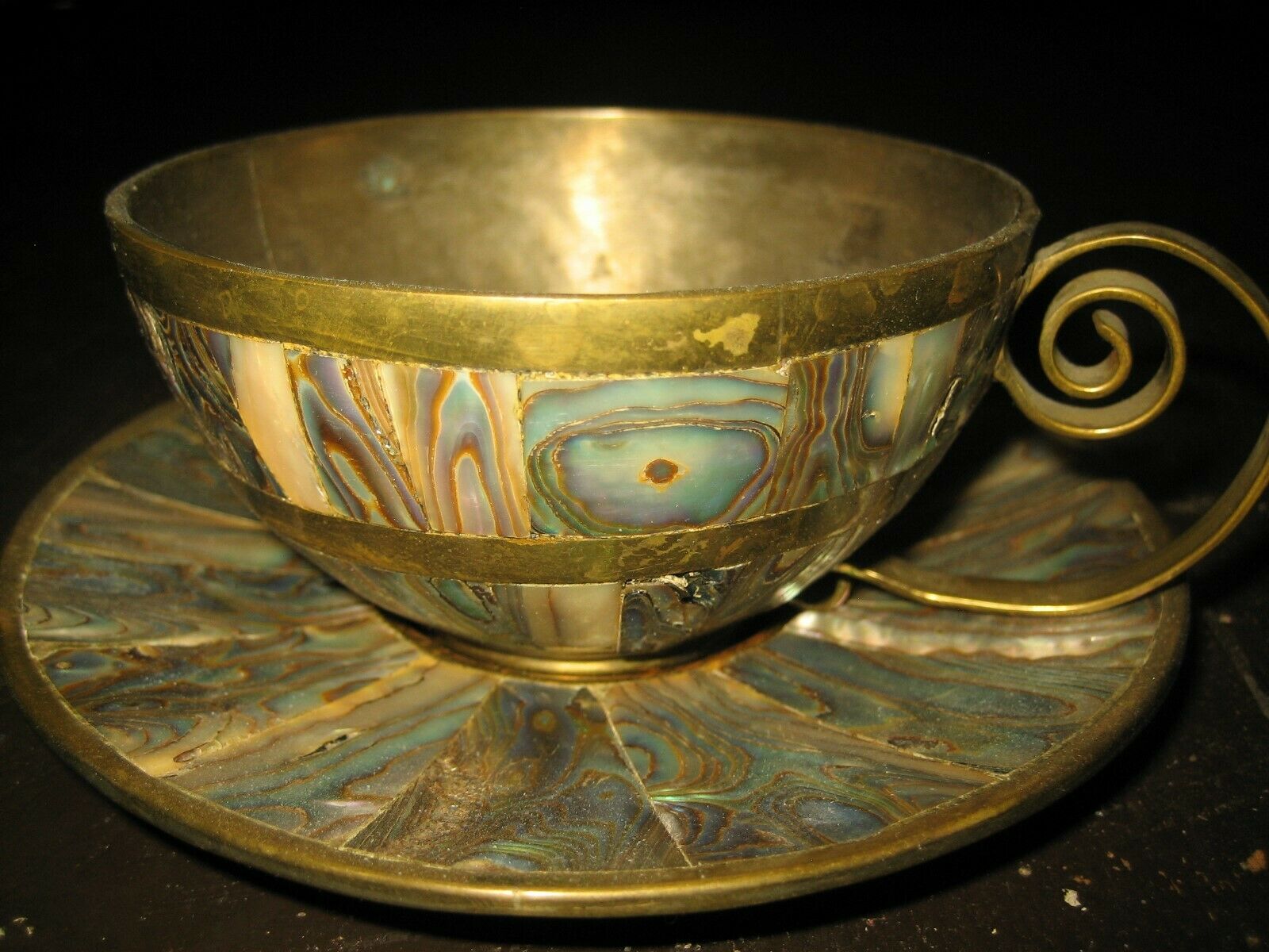 Vintage Brass & Mother of Pearl Tea Cup and Saucer
