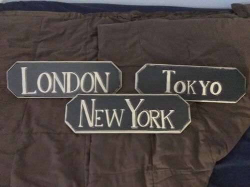 Hanging Wooden Designer Influenced Major City Signs. Mint Condition