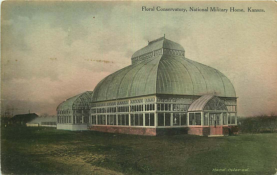 Hand-Colored Postcard Floral Conservatory, National Military Home, Kansas