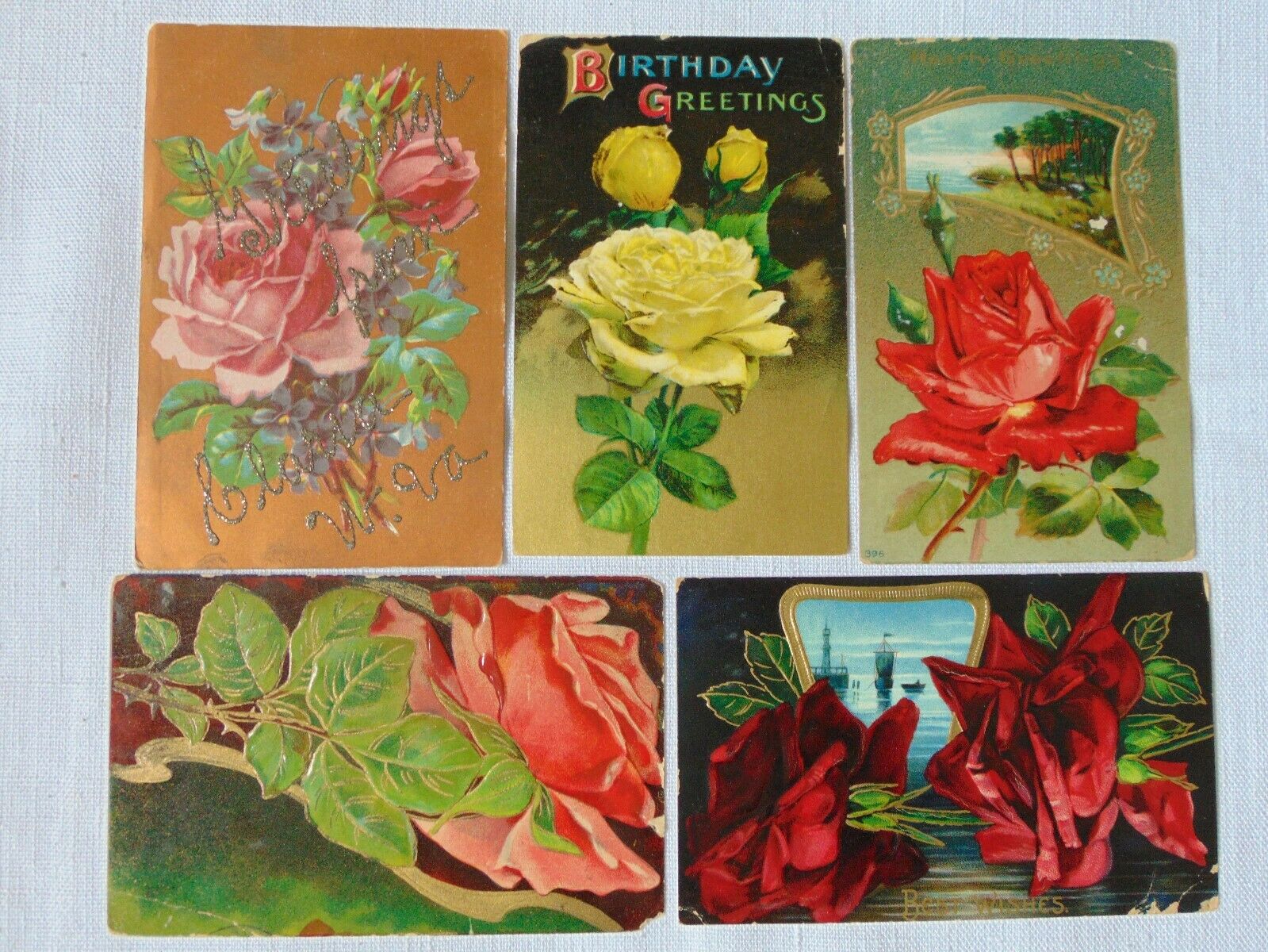 Title (ebay affiliate link): 5 Antique Birthday greeting postcards~ all beautiful roses - c1909+