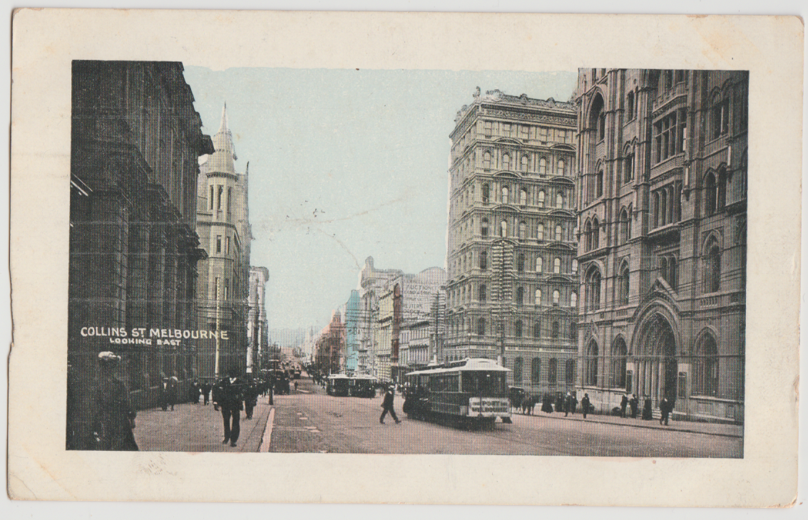 Title (ebay affiliate link): Australia VICTORIA Collins Street MELBOURNE trams Jolley postcard c1905