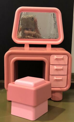 Vintage 1977 Mattel Barbie Dream House Furniture Pink Vanity & Vanity Bench