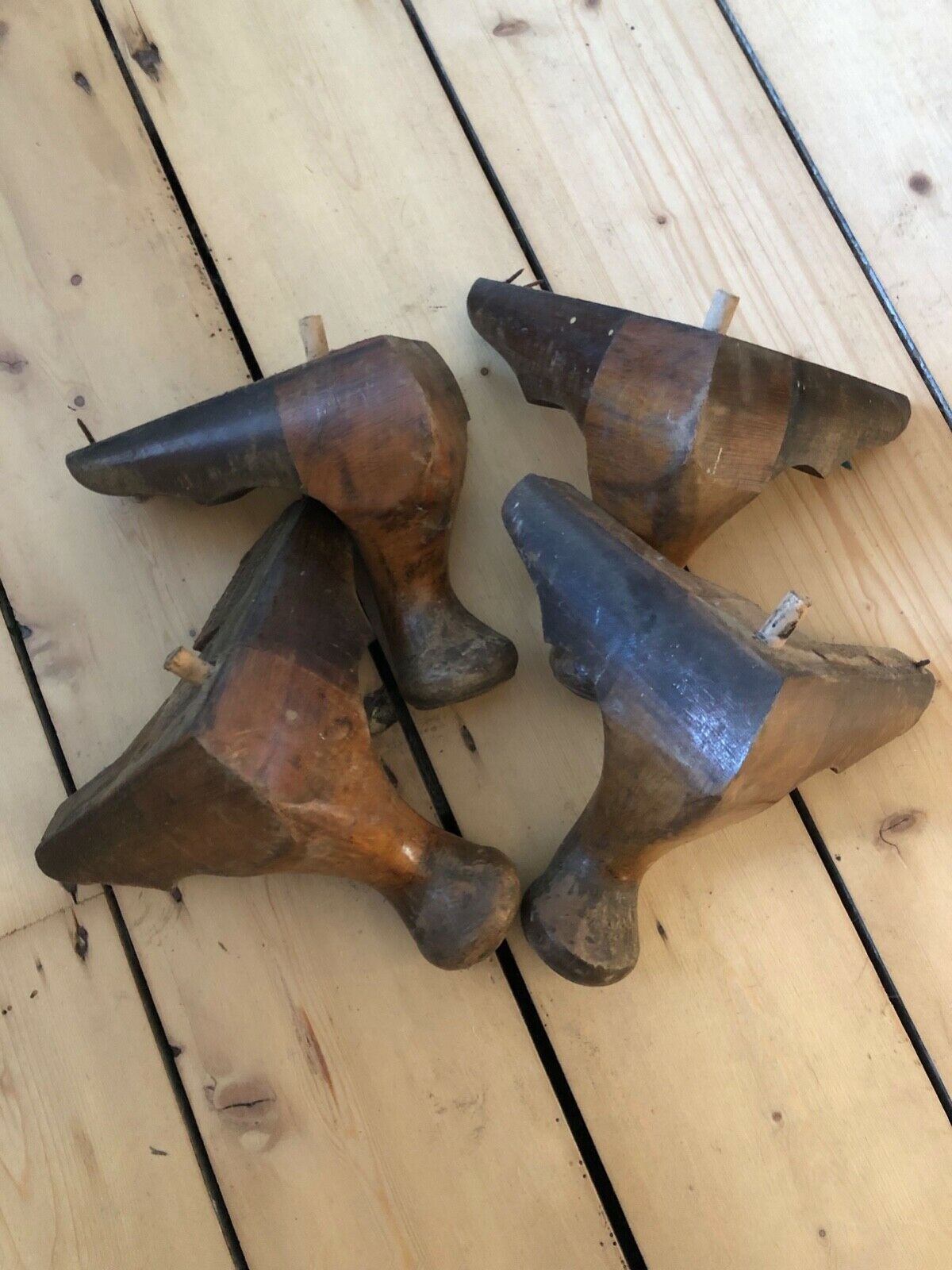 Set of 4 Shaped Turned Wood Chair Settee Feet Legs Vintage Victorian Edwardian